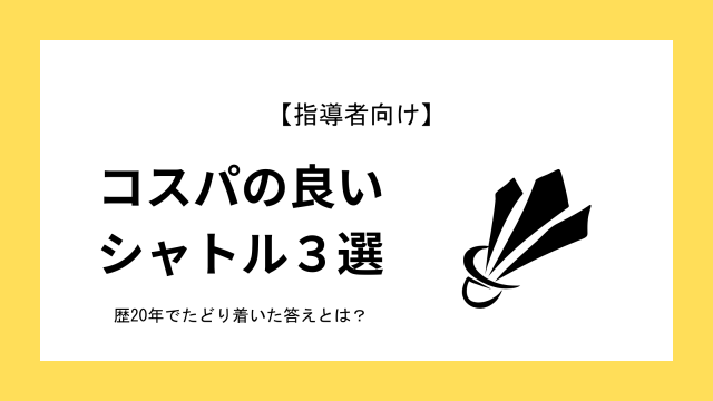 指導者向け 【指導者向け】本当にコスパの良いシャトル3選 バドミントンのシャトル選びで損してるかも?バドミントン歴20年以上の私が本当にお財布に優しいコスパシャトルを選手レベル別に紹介! 2024.08.30 指導者向け